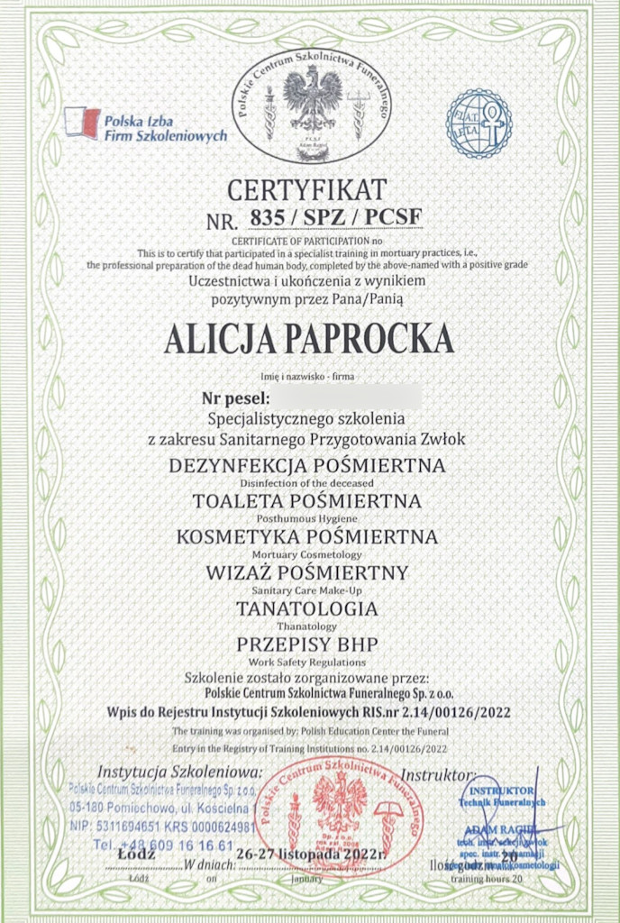 Całodobowy kontakt z Zakładem Pogrzebowym Mój Anioł Stróż: 609 809 105.